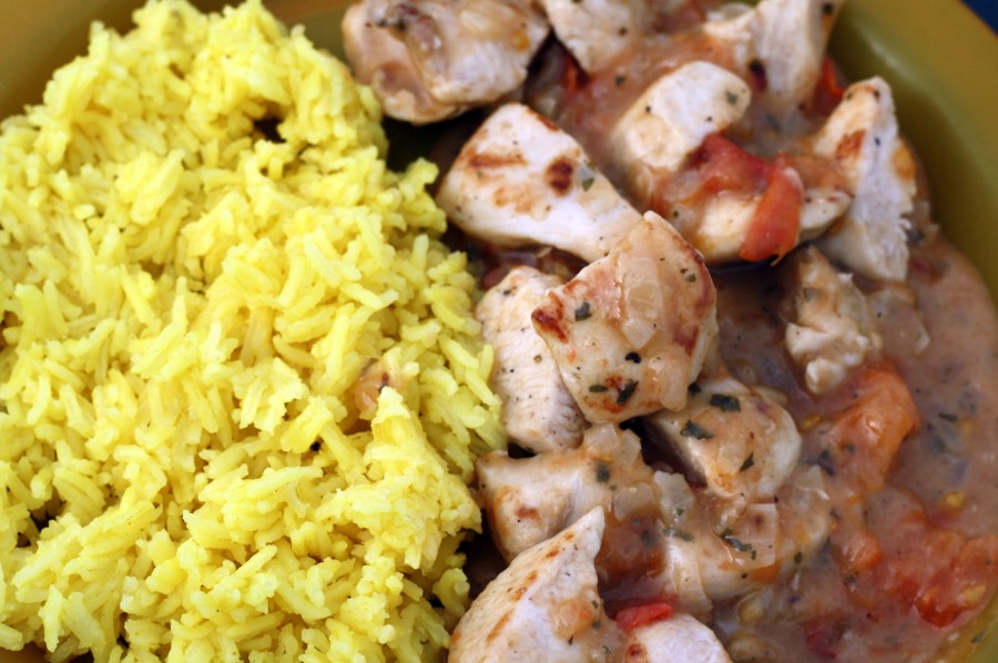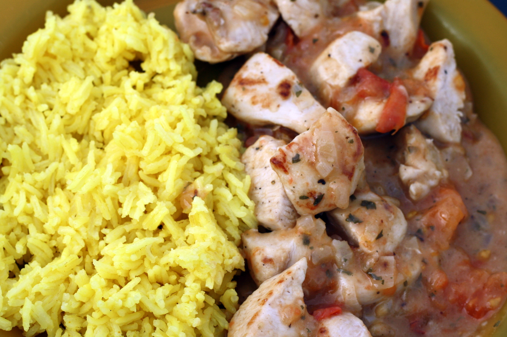 Kip met gele rijst
